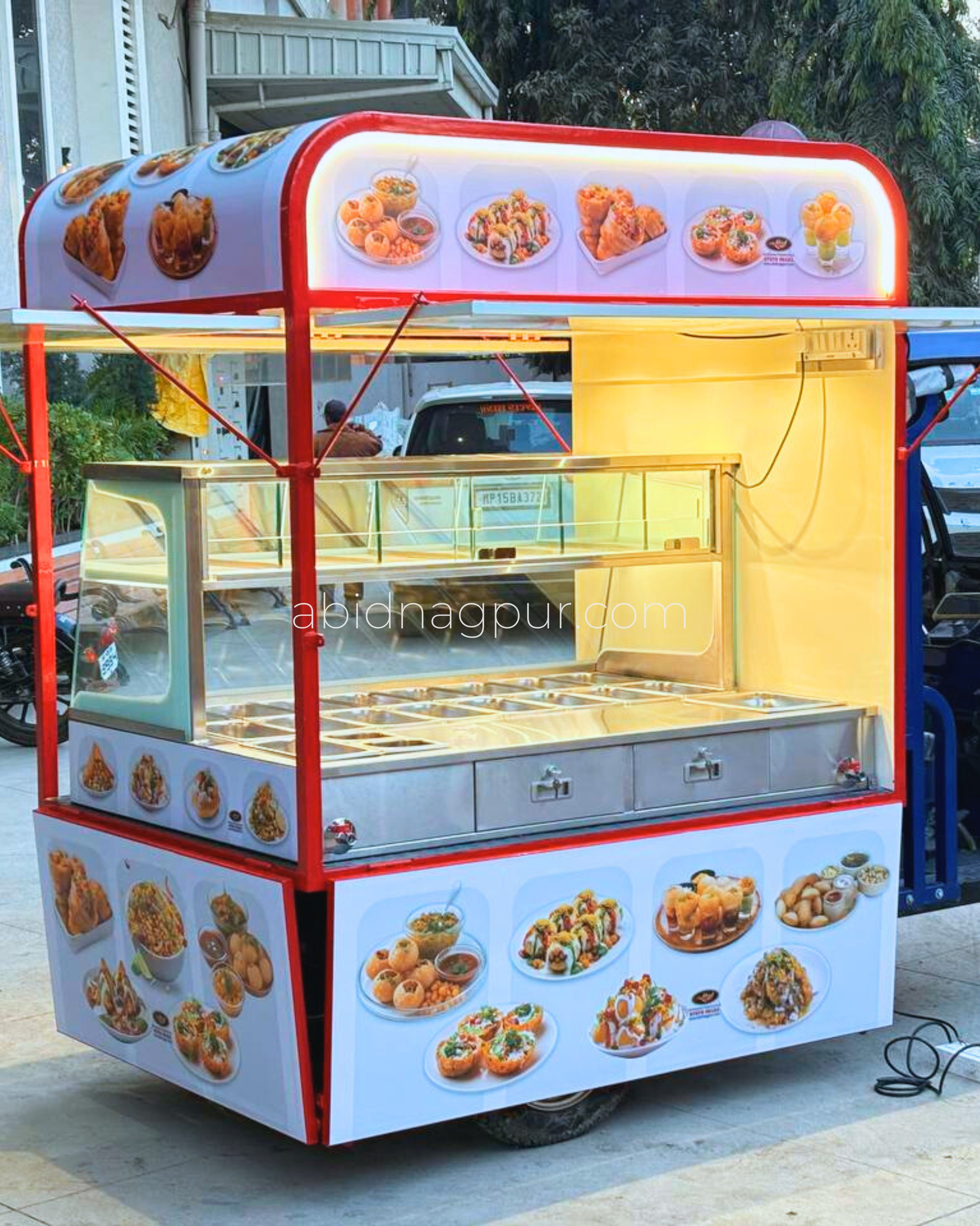 SS 304 food cart manufacturer, stainless steel food cart India, premium food cart SS 304, commercial food cart manufacturer, street food cart stainless steel, modular food cart India, hygienic food cart design, pani puri food cart, chole kulche food cart, momos food cart SS 304, heavy duty food cart, mobile food cart manufacturer, custom food cart SS 304