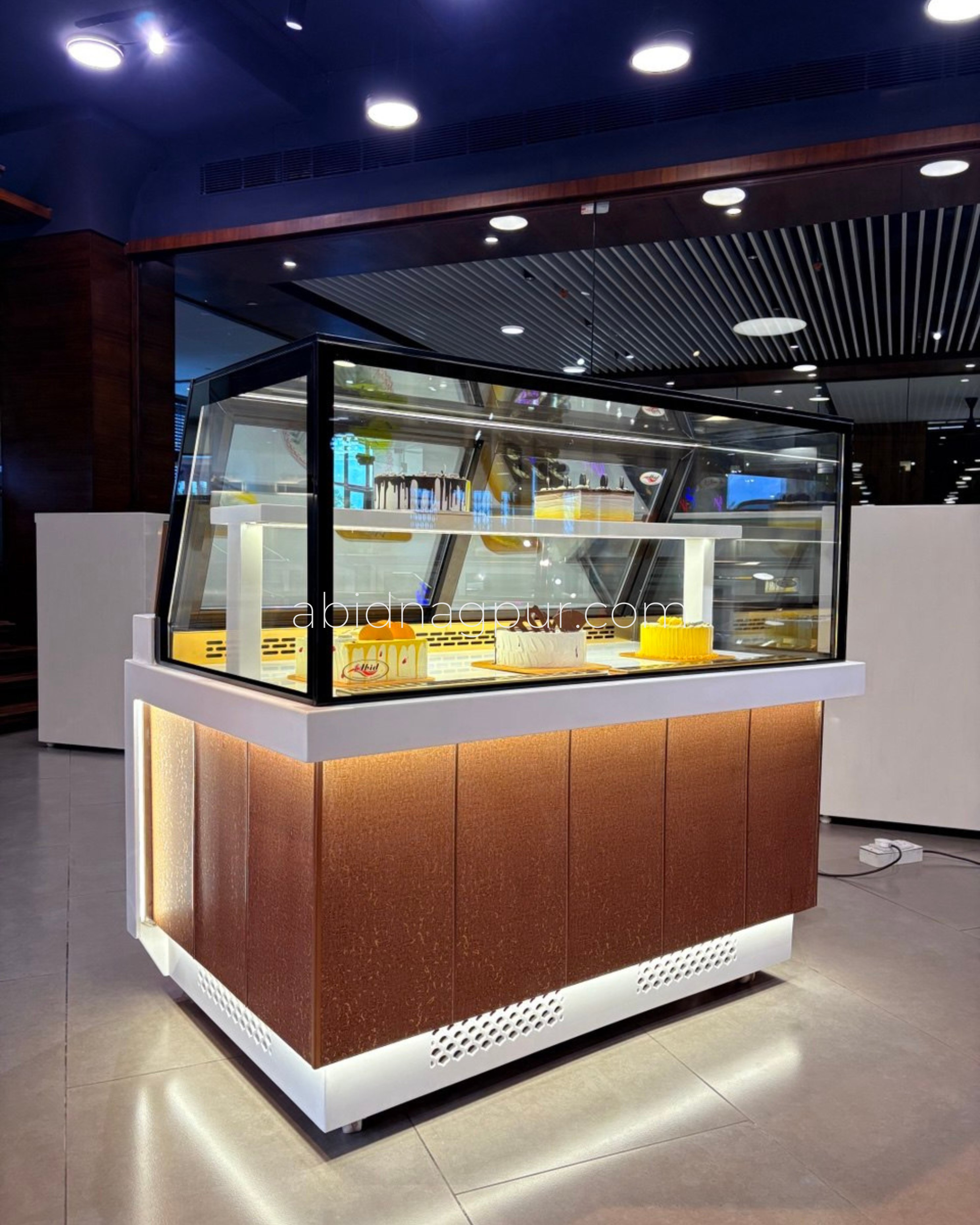Abid Refrigeration Cake Display Counters are crafted using high-quality SS 304 food-grade stainless steel with elegant premium Corian work, offering superior durability, hygiene, and a luxurious finish for modern bakeries and dessert outlets. Designed for professional use, these refrigerated cake display counters feature uniform cooling and efficient air circulation to maintain the freshness, taste, and texture of cakes and pastries for longer hours, while clear glass panels and integrated LED lighting enhance product visibility and customer appeal. Ideal for bakeries, pastry shops, cafés, hotels, and cake showrooms, our counters are available in custom sizes and designs, combining energy-efficient performance with a premium look.