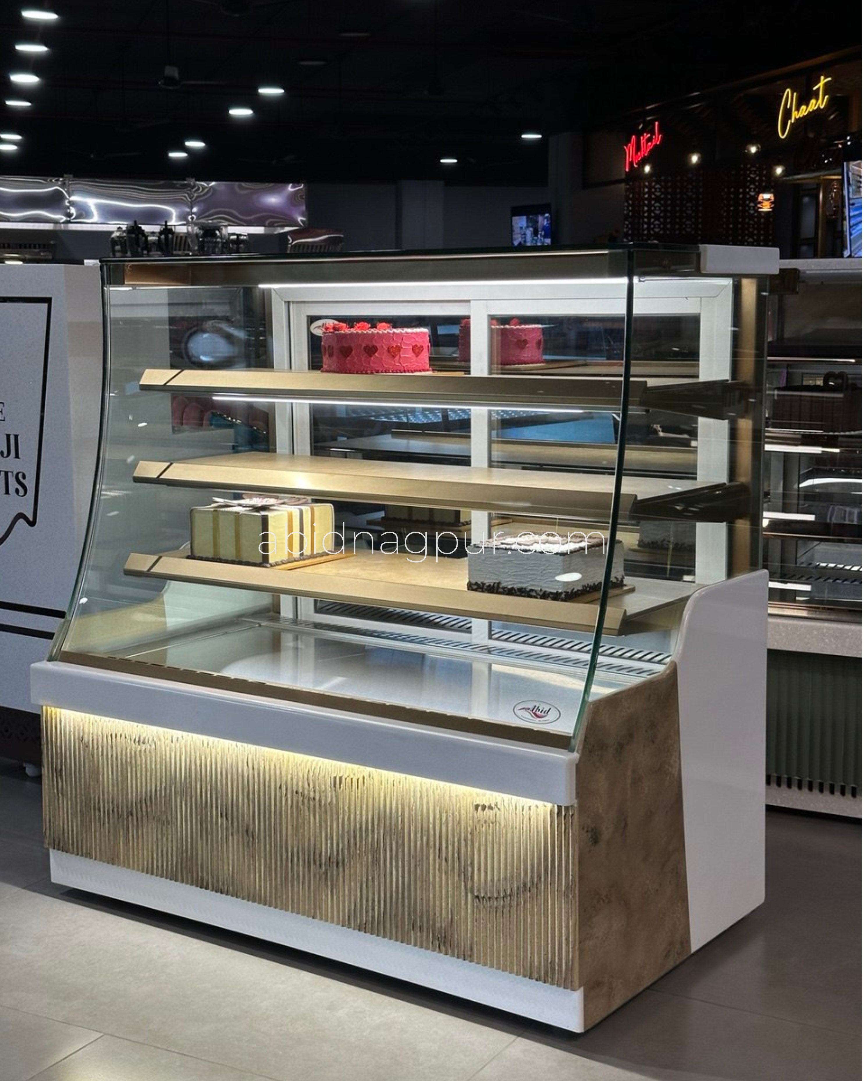 Abid Refrigeration Cake Display Counters are crafted using high-quality SS 304 food-grade stainless steel with elegant premium Corian work, offering superior durability, hygiene, and a luxurious finish for modern bakeries and dessert outlets. Designed for professional use, these refrigerated cake display counters feature uniform cooling and efficient air circulation to maintain the freshness, taste, and texture of cakes and pastries for longer hours, while clear glass panels and integrated LED lighting enhance product visibility and customer appeal. Ideal for bakeries, pastry shops, cafés, hotels, and cake showrooms, our counters are available in custom sizes and designs, combining energy-efficient performance with a premium look.